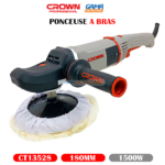 PONCEUSE A BRAS 180MM 1500W CROWN, est un outil électrique conçu pour les travaux de polissage et de lustrage sur diverses surfaces, notamment les carrosseries de voitures, les bateaux et les meubles.