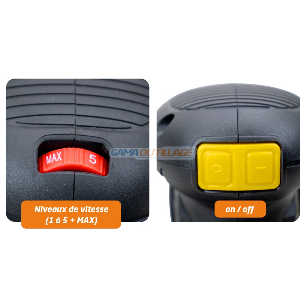 | Variateur de vitesse à 6 positions permettant un contrôle précis pour le ponçage grossier ou le polissage fin |