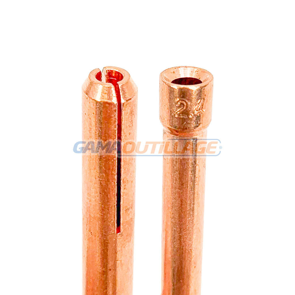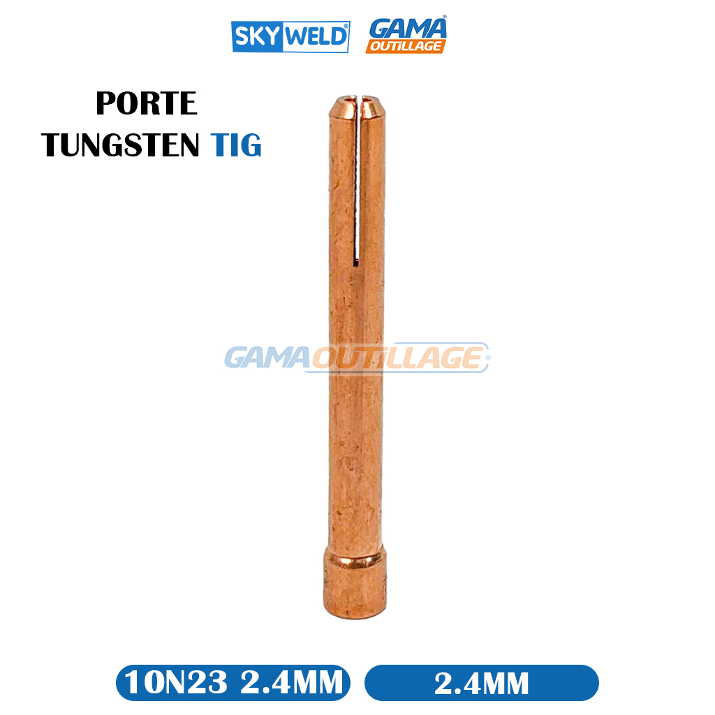 PORTE TUNGSTEN TIG 2.4MM SKY, est un outil essentiel utilisé dans le processus de soudage TIG (Tungstène Inert Gas). Il sert à maintenir l’électrode de tungstène, une tige métallique non consommable, à une distance précise de la pièce à souder.