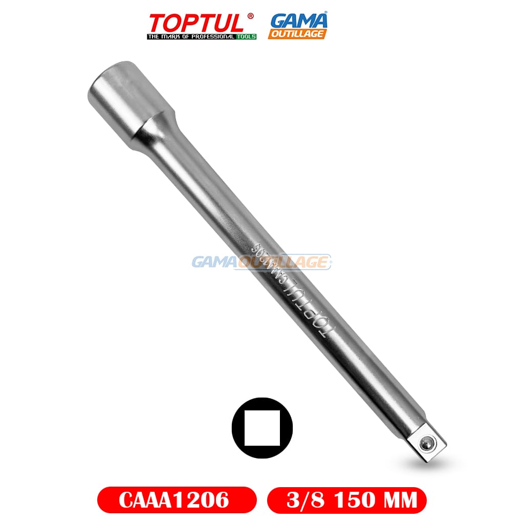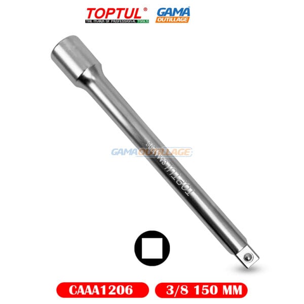 GAMAOUTILLAGE vous suggéré un RALLONGE 3/8 150 MM, cette Rallonge est un barre d’extension de 3/8″ Satin 10″ Toptul CAAA1610.Une rallonge 3/8 de 150 mm est une pièce utilisée dans le domaine des outils et de la mécanique.
