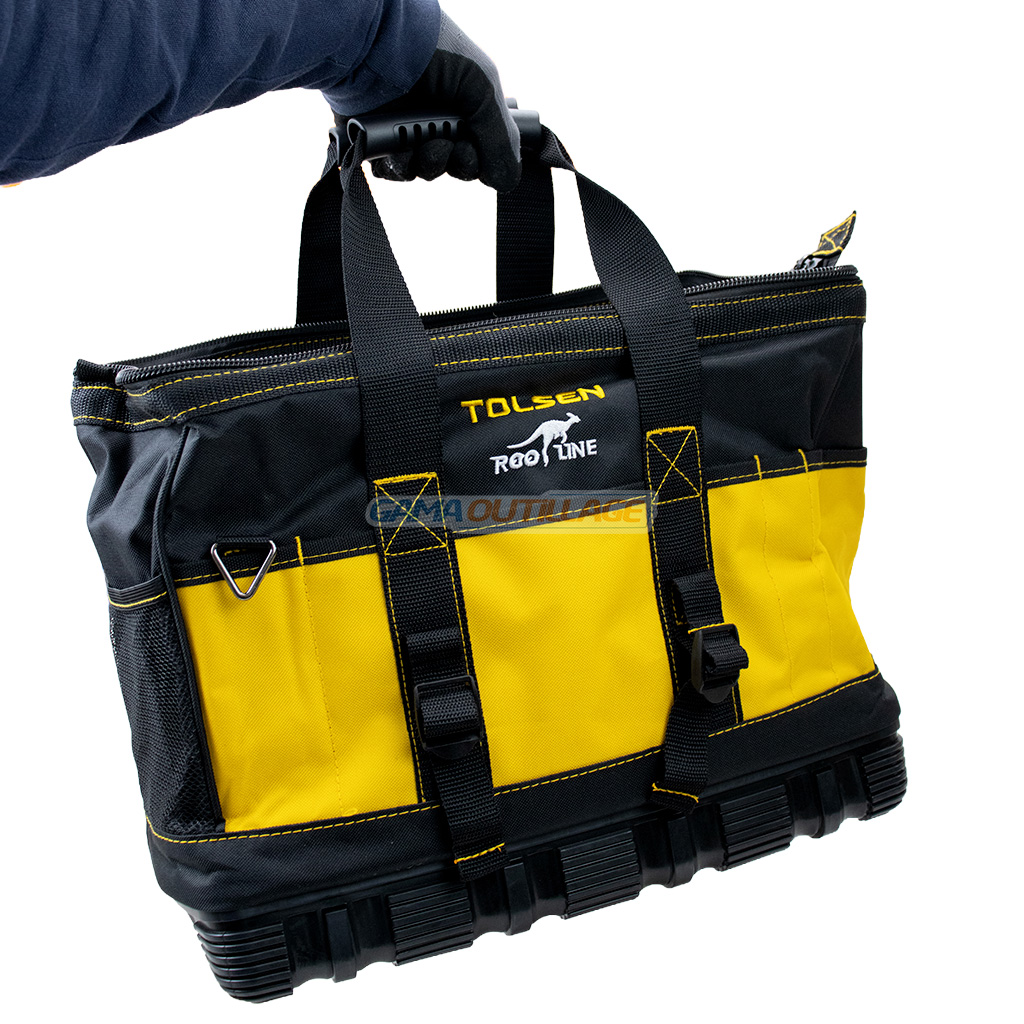 La caisse de rangement toile 16 TOLSEN référence 8103 est une solution de transport industrielle conçue pour les professionnels exigeants. Alliant la souplesse du textile à la robustesse d’une structure rigide, ce sac offre une ouverture large facilitant l’accès immédiat à vos outils. Sa base en plastique renforcé assure une protection optimale contre l’humidité et les chocs sur les chantiers, tandis que sa conception ergonomique permet une organisation structurée grâce à ses multiples compartiments internes et externes.
