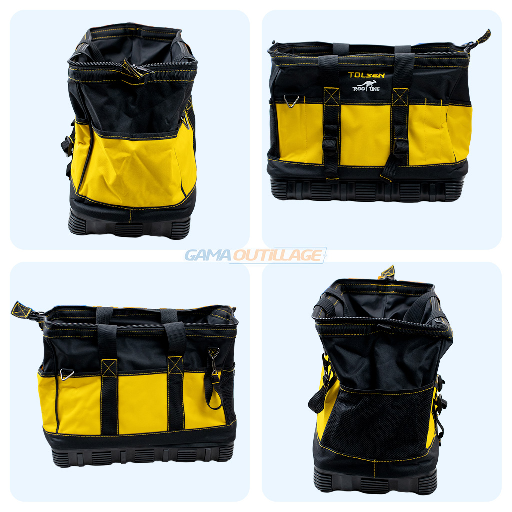 | Cadre rigide intégré permettant de maintenir le sac ouvert pour un accès rapide aux outils |