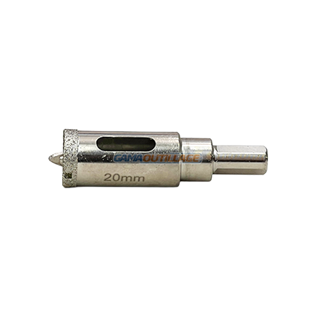 Scie cloche diamantée SNZO 20 mm avec mèche centrée. Pour céramique, grès, faïence. Livrée en boîte avec clé Allen. Disponible chez GAMA OUTILLAGE.