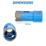 La Scie Cloche Diamant à Sec 25mm TA 011957 est conçue pour le perçage précis des matériaux durs tels que le carrelage, la céramique, le grès et les surfaces similaires. Grâce à son revêtement diamanté haute qualité, elle garantit une coupe nette et rapide à sec, sans nécessité d’arrosage.