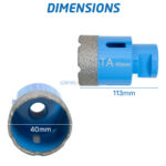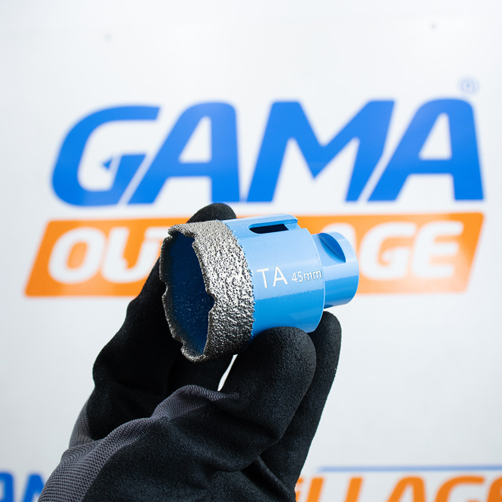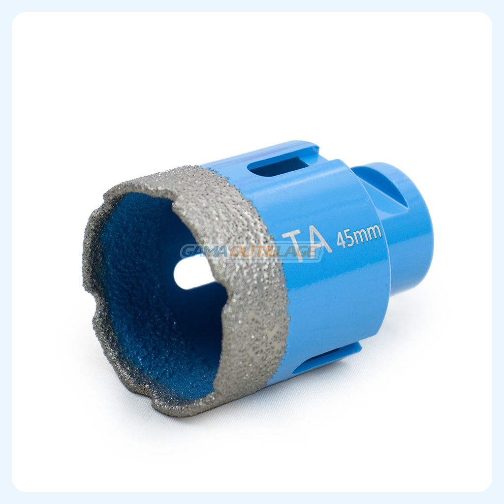 Scie cloche diamant 45mm à sec TA 011961, idéale pour percer carrelage et céramique avec précision et finition nette.
