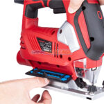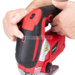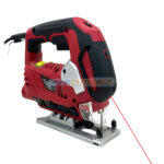 - De plus, cette scie sauteuse est équipée d’un laser pour indiquer une ligne rouge avant de faire une coupe droite et d’une lampe de travail équipée pour éclairer la zone de travail.