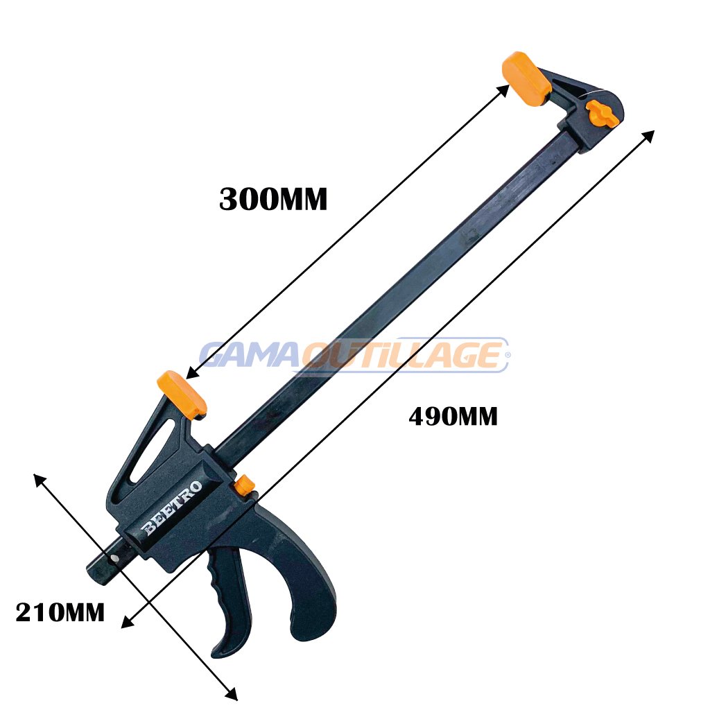 GAMAOUTILLAGE vous propose une SERRE JOINT A CLIQUET 300MM BEETRO, est un outil polyvalent qui peut être utilisé pour une variété de tâches, notamment la menuiserie, l’assemblage et la fabrication. Il est fabriqué en acier robuste et dispose d’un mécanisme de serrage rapide qui permet de serrer et desserrer rapidement les pièces.
