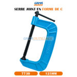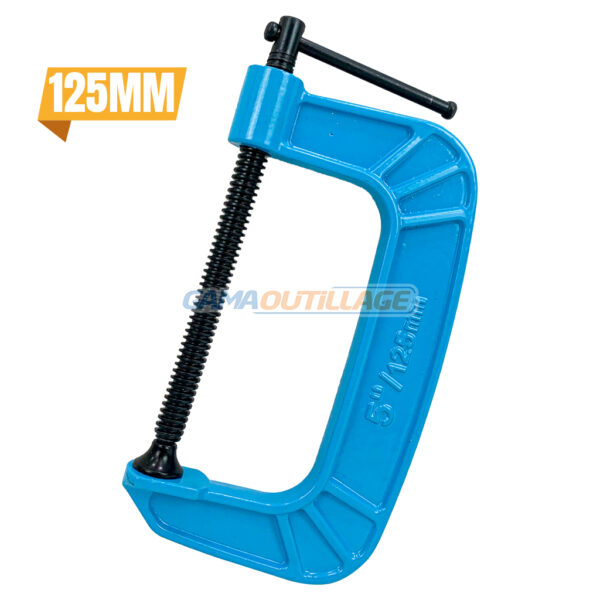 SERRE JOINT EN FORME DE C 125MM TA , est un outil de serrage composé d’une longue branche fixe et d’une branche mobile reliées par un écrou. Cette forme en “C” lui permet d’exercer une pression uniforme sur les pièces à assembler ou à maintenir en place.