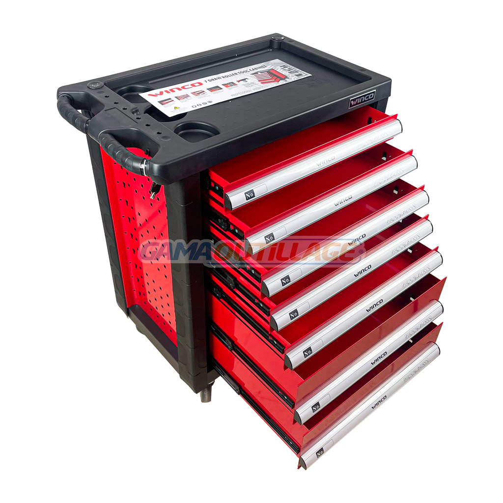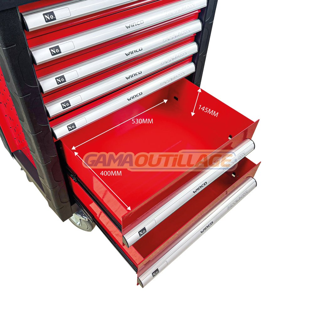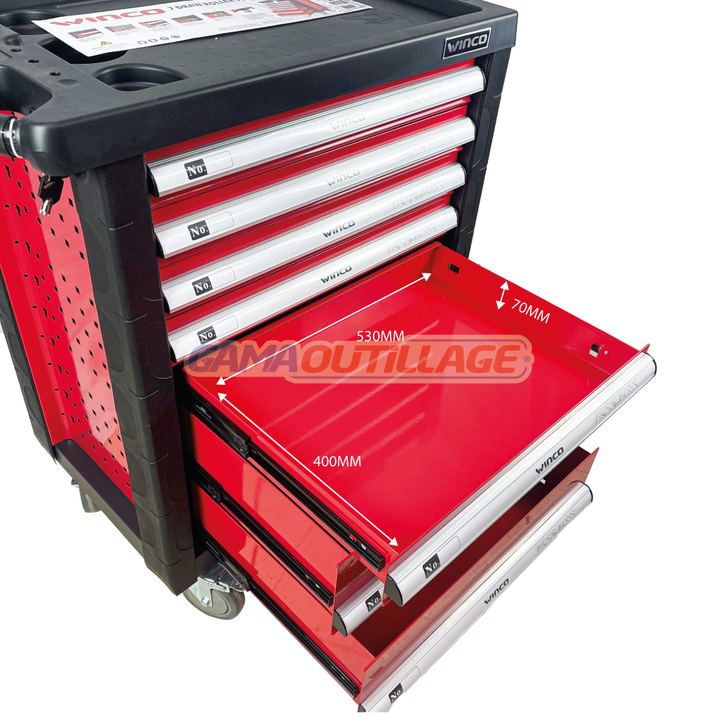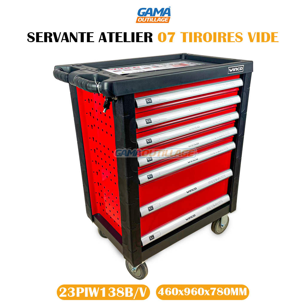 GAMAOUTILLAGE vous propose une SERVANTE ATELIER 07 TIROIRES VIDE WINCO, La servante d’atelier en acier EBERTH est à double paroi. L’outillage est extrêmement robuste, car il est fabriqué en acier chrome-vanadium durable.