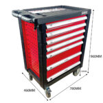 - 7 TIROIRS, DONT 5 SONT ÉQUIPÉS D’OUTILS: Les tiroirs sont équipés de rails télescopiques à roulement à billes, chaque tiroir peut supporter une charge maximale de 45kg. Vous recevrez cinq inserts en mousse avec des outils de qualité. Vous trouverez ci-dessous la liste exacte des outils.
