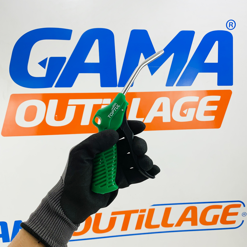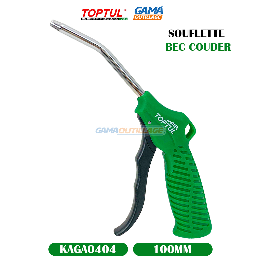 GAMAOUTILLAGE vous propose une SOUFLETTE 100MM BEC COUDER TOPTUL, est un outil pneumatique utilisé pour souffler de l’air comprimé afin de nettoyer la poussière, les débris et autres saletés. le bec allongé et d’un raccord fileté 1/4″ pour la connexion à un compresseur d’air.