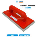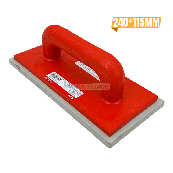 TALOCHE SEMELLE SOUPLE 115*240 DEKOR, est un outil de maçonnerie conçu pour appliquer et lisser le mortier de joint entre les carreaux de céramique, de pierre ou autres matériaux similaires.