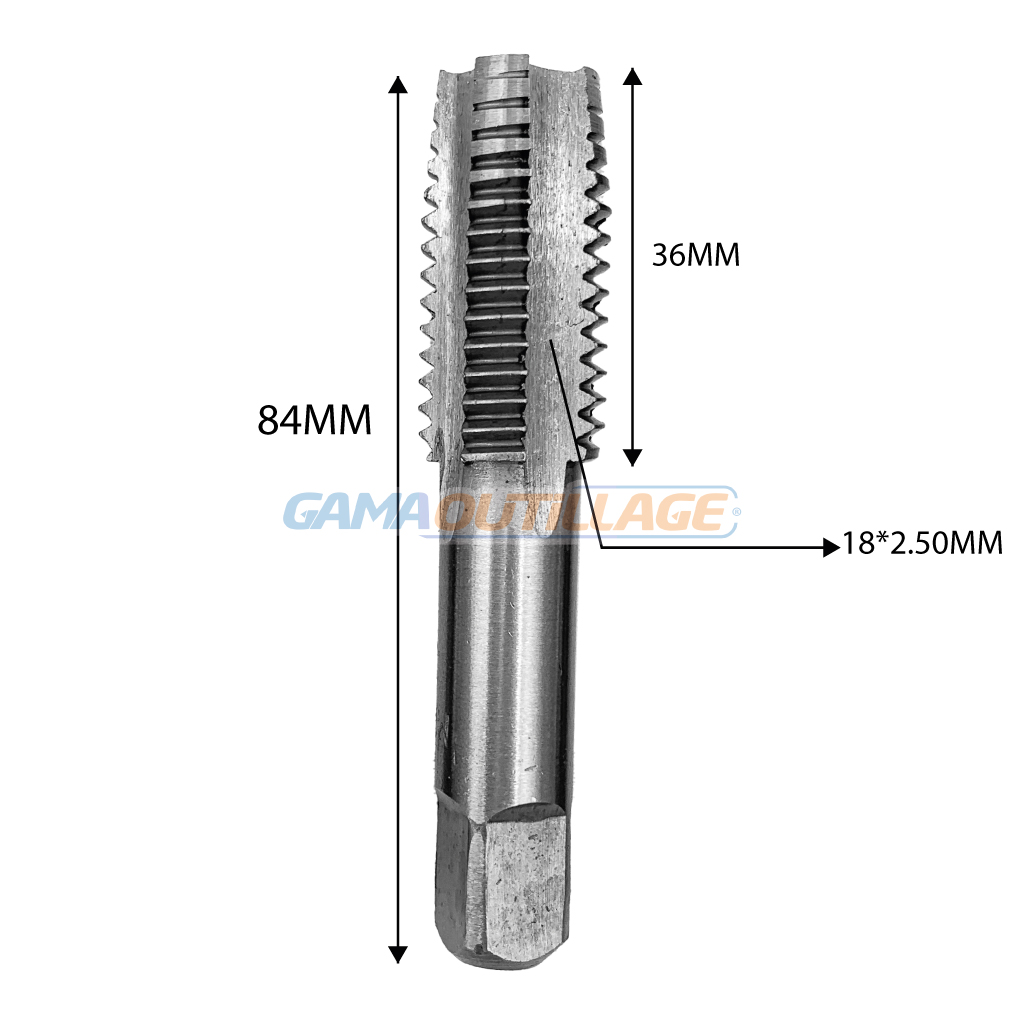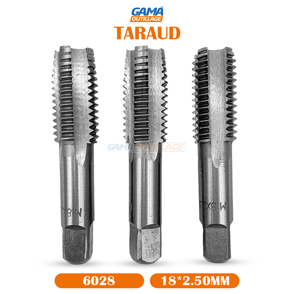 GAMAOUTILLAGE vous propose une TARAUD 18*2.50 TA, est un outil de coupe utilisé pour créer des filetages internes dans des pièces métalliques ou plastiques. Il est conçu pour couper le matériau et le former en spirale le long d’un trou pré-percé, créant ainsi un filetage femelle compatible avec un boulon ou une vis de même diamètre et pas de vis.