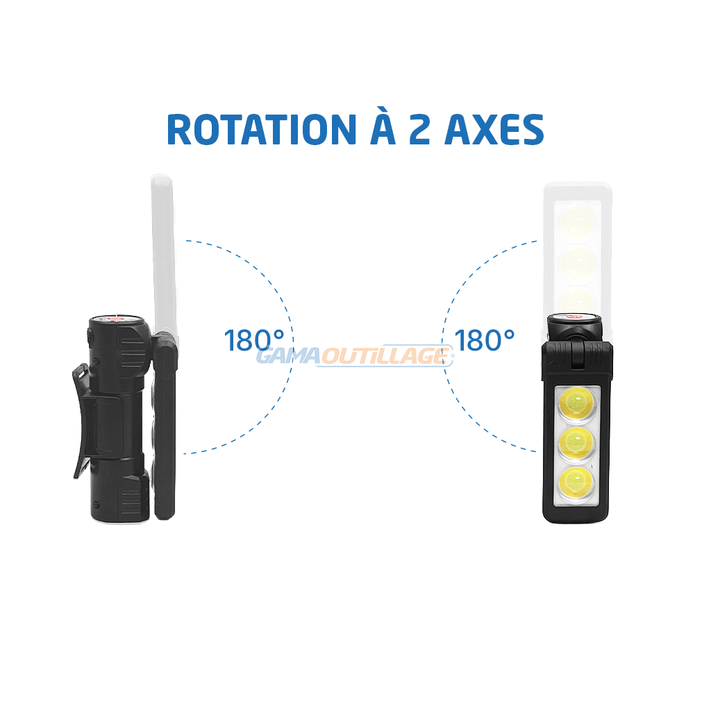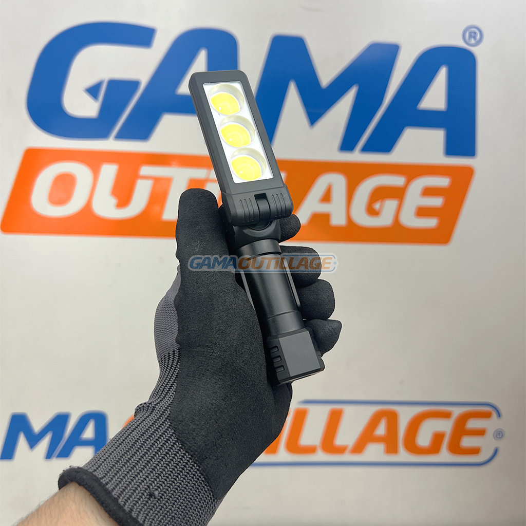 La torche LED DNM GA659 est une lampe compacte à LED triple, montée sur double axe de rotation à 180°, parfaite pour les zones de travail restreintes. Elle peut être utilisée en lampe de poche, ou montée sur une sangle pour servir de lampe frontale grâce au support inclus.