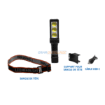 Torche LED 5306 DNM frontale avec sangle, 3 LED COB, double rotation, câble USB-C fourni. Disponible chez GAMA OUTILLAGE.