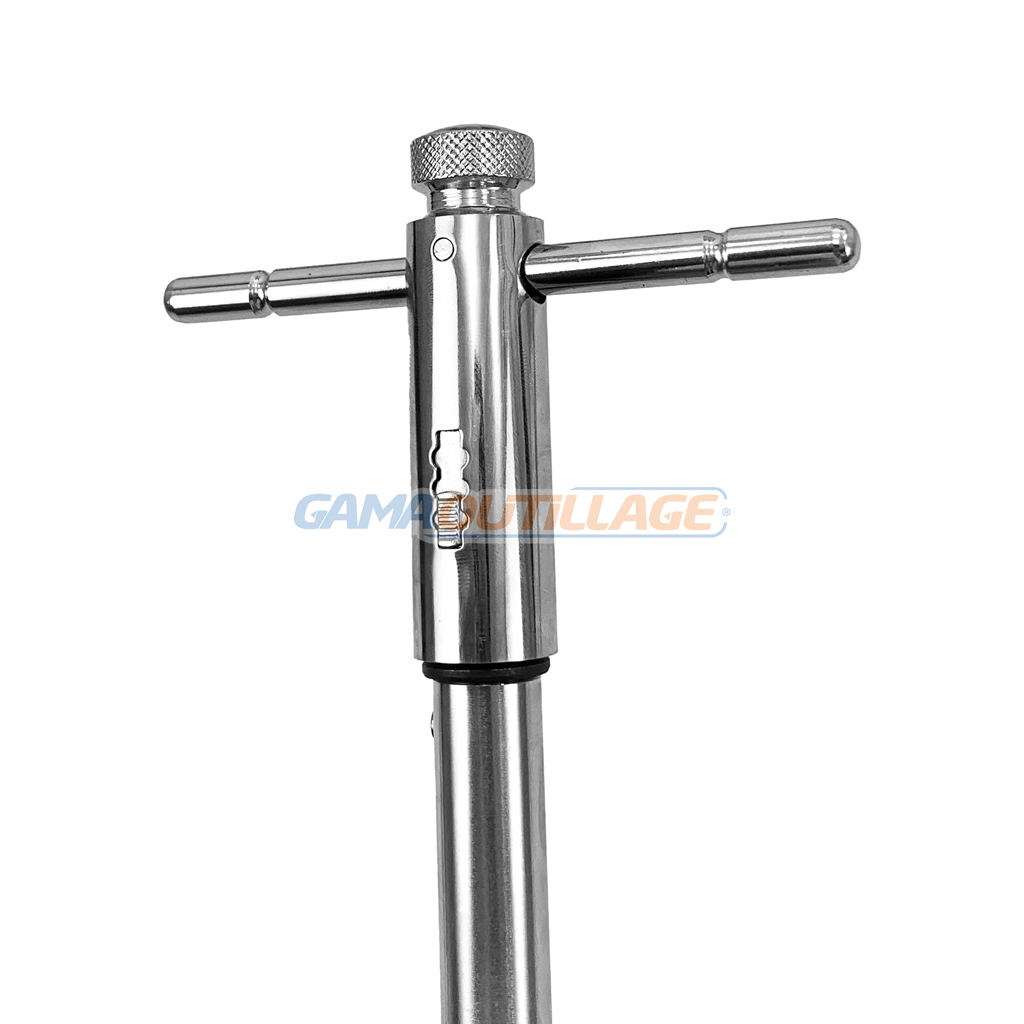 - La poignée en T réglable peut être « glissée » d’un côté à l’autre pour un positionnement pratique et un effet de levier supplémentaire dans les endroits restreints