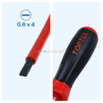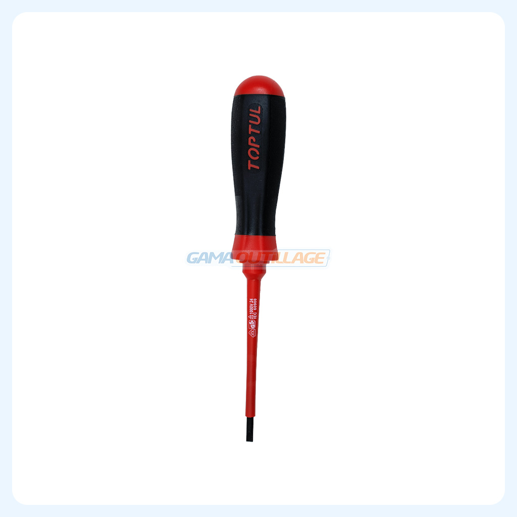 Le tournevis plat isolé 4x100mm TOPTUL FAEB0410 est conçu pour les travaux électriques nécessitant sécurité et précision. Conforme à la norme IEC 60900, il supporte une isolation jusqu’à 1000V, garantissant une protection optimale lors des interventions sous tension.