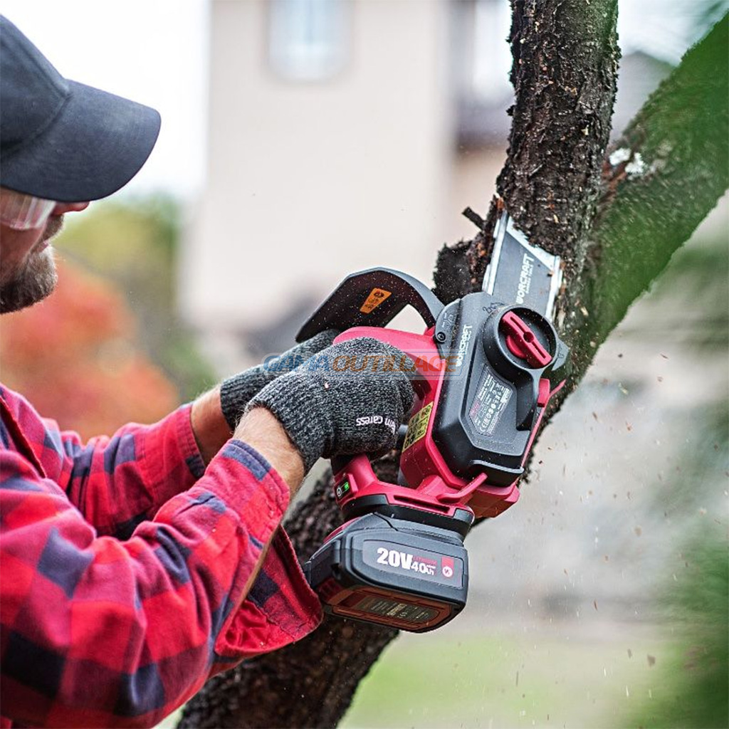 Dotée d’un guide-chaîne de 8” (203 mm) et d’une capacité de coupe jusqu’à 175 mm, cette tronçonneuse sans fil WORCRAFT est idéale pour l’élagage, la taille de branches et la coupe de bois domestique.
