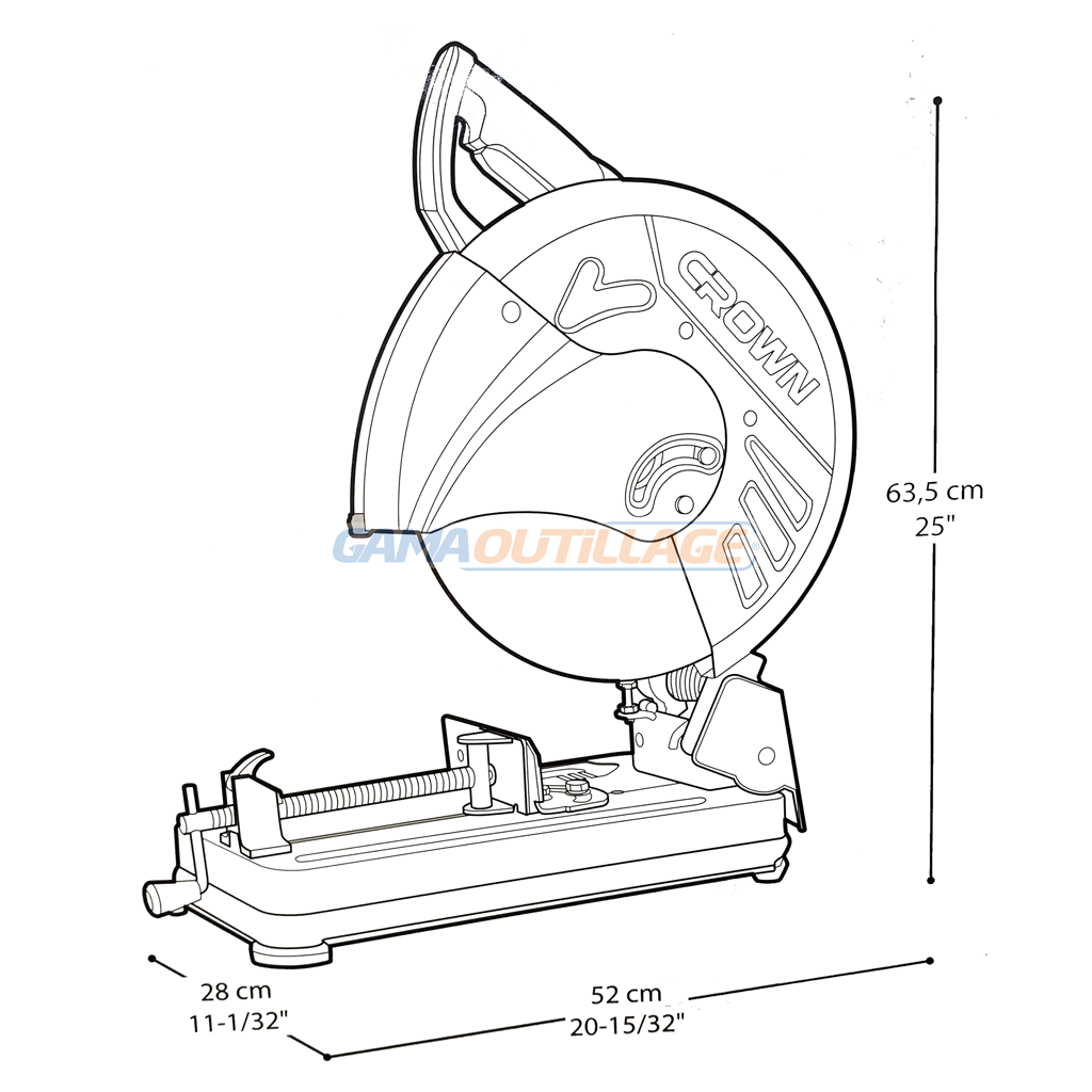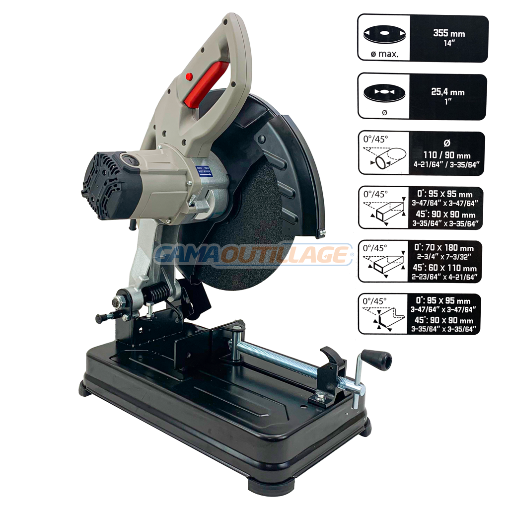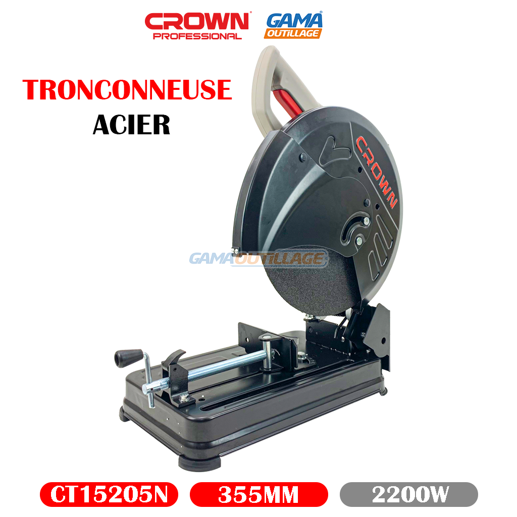 TRONCONNEUSE ACIER 355MM 2200W CROWN, est un outil électrique robuste et performant, spécialement conçu pour couper efficacement divers types de métaux ferreux.