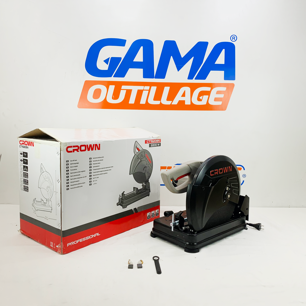 GAMAOUTILLAGE vous propose une TRONCONNEUSE ACIER 355MM 2200W CROWN, est un outil électrique robuste et performant, spécialement conçu pour couper efficacement divers types de métaux ferreux. Grâce à son puissant moteur de 2200 watts, elle offre une vitesse de rotation élevée (jusqu’à 3800 tr/min), permettant ainsi de réaliser des coupes précises et rapides.