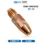 TUBE CONTACTE M8*30 0.8 MM SKY, est une pièce essentielle pour une torche de soudage MIG/MAG. Il s’agit d’un composant en cuivre qui conduit le courant électrique du câble de la torche à l’extrémité du fil fusible. Le diamètre du trou central du tube contact correspond au diamètre du fil fusible.