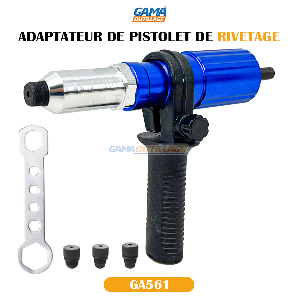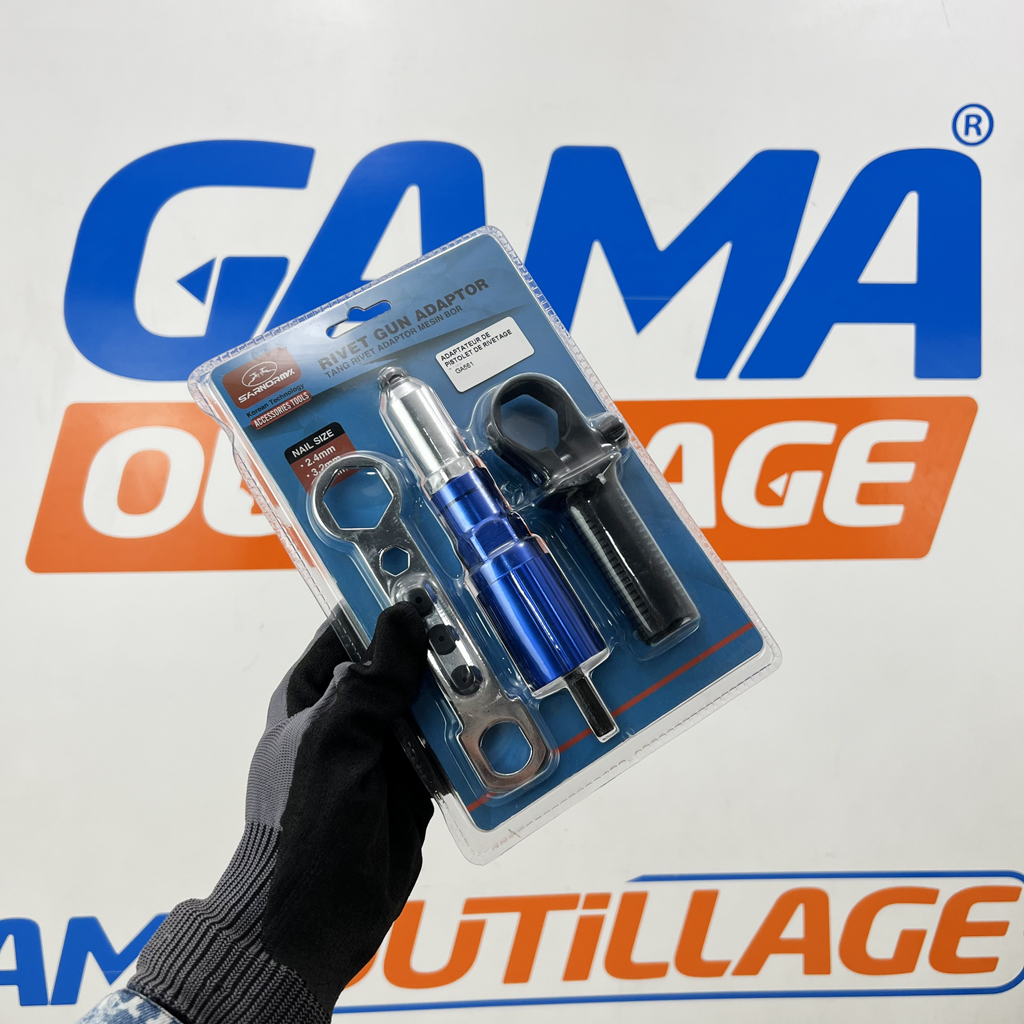 GAMAOUTILLAGE vous propose une ADAPTATEUR DE PISTOLET DE RIVETAGE DNM, est un outil qui se fixe à une perceuse ou une visseuse pour la transformer en riveteuse. C’est une solution pratique et économique pour réaliser des travaux de rivetage sans avoir à investir dans un outil dédié.