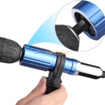 - Vitesse rapide : l’adaptateur de foret à riveter ne repousse pas facilement, haute vitesse et haute efficacité, design de l’astomose des ongles à trois griffes pour griffer les ongles à 360 degrés, rivets lisses sans bavures, structure en trois parties ne se fixe pas facilement.