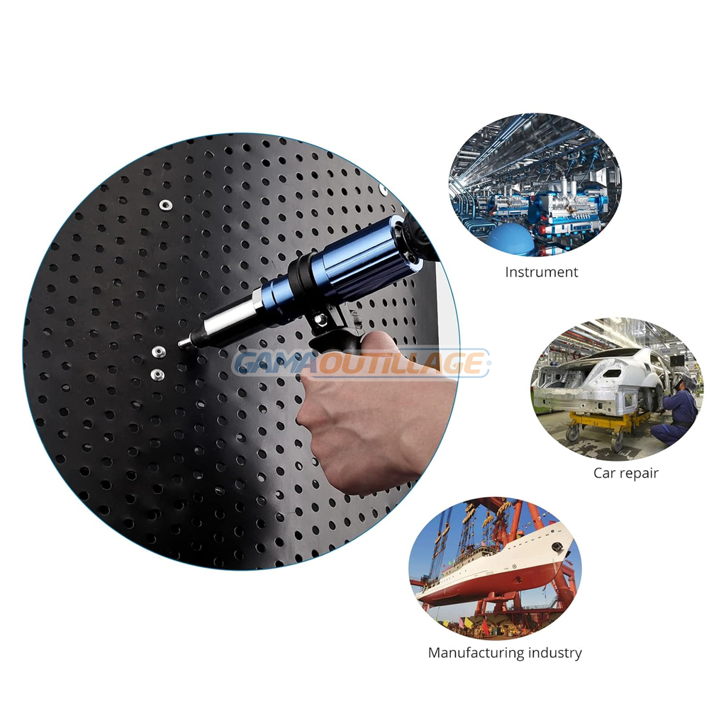 - Adaptateur de pistolet à riveter électronique facile à utiliser : conversion de vis hexagonale commune reliée à une perceuse électrique, pistolet à riveter électrique à rotation rapide, installation facile. La coque passe de forme fine à épaisse qui a peu de résistance à l’air et n’est pas encombrante et facile à utiliser.