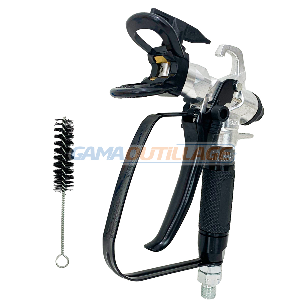- Le pulvérisateur est livré avec un ensemble complet d’accessoires, notamment un pistolet, un tuyau de 15 m, un filtre et une buse de 210°. Le pistolet est ergonomique et facile à utiliser, et il est équipé d’un régulateur de pression qui permet d’ajuster le débit de peinture. Le tuyau est long et flexible, ce qui permet de travailler confortablement sans avoir à déplacer le pulvérisateur. Le filtre protège le moteur des impuretés, et la buse de 210° permet de pulvériser une large zone de peinture.