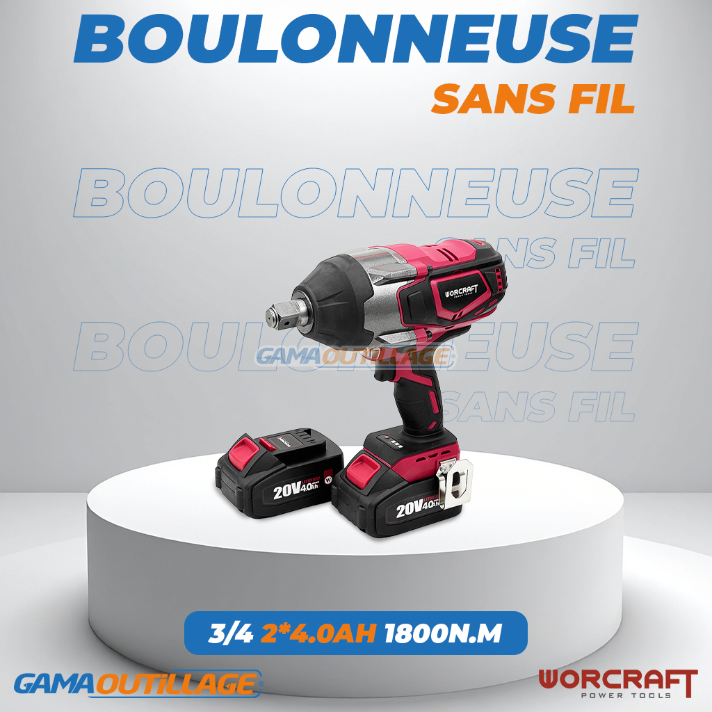 BOULONNEUSE S/FIL 3/4 2*4.0AH 1800N.M WORCRAFT