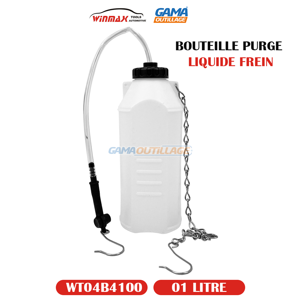 BOUTEILLE PURGE LIQUIDE FREIN 1L WINMAX, est un outil utilisé pour faciliter la purge du système de freinage d’un véhicule. La purge est nécessaire pour éliminer l’air ou l’humidité qui peuvent s’accumuler dans les conduites de frein et affecter l’efficacité du freinage.