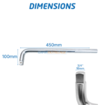 Sa forme coudée permet un accès facilité aux écrous difficiles, tandis que sa longueur de 450 mm assure une excellente démultiplication de la force.