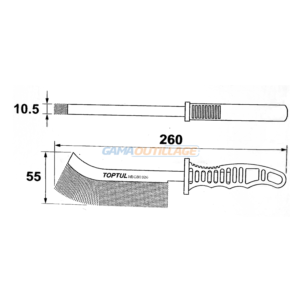 - Dimensions de la brosse : (L) 260 x (l) 10,5 x (H) 55 mm