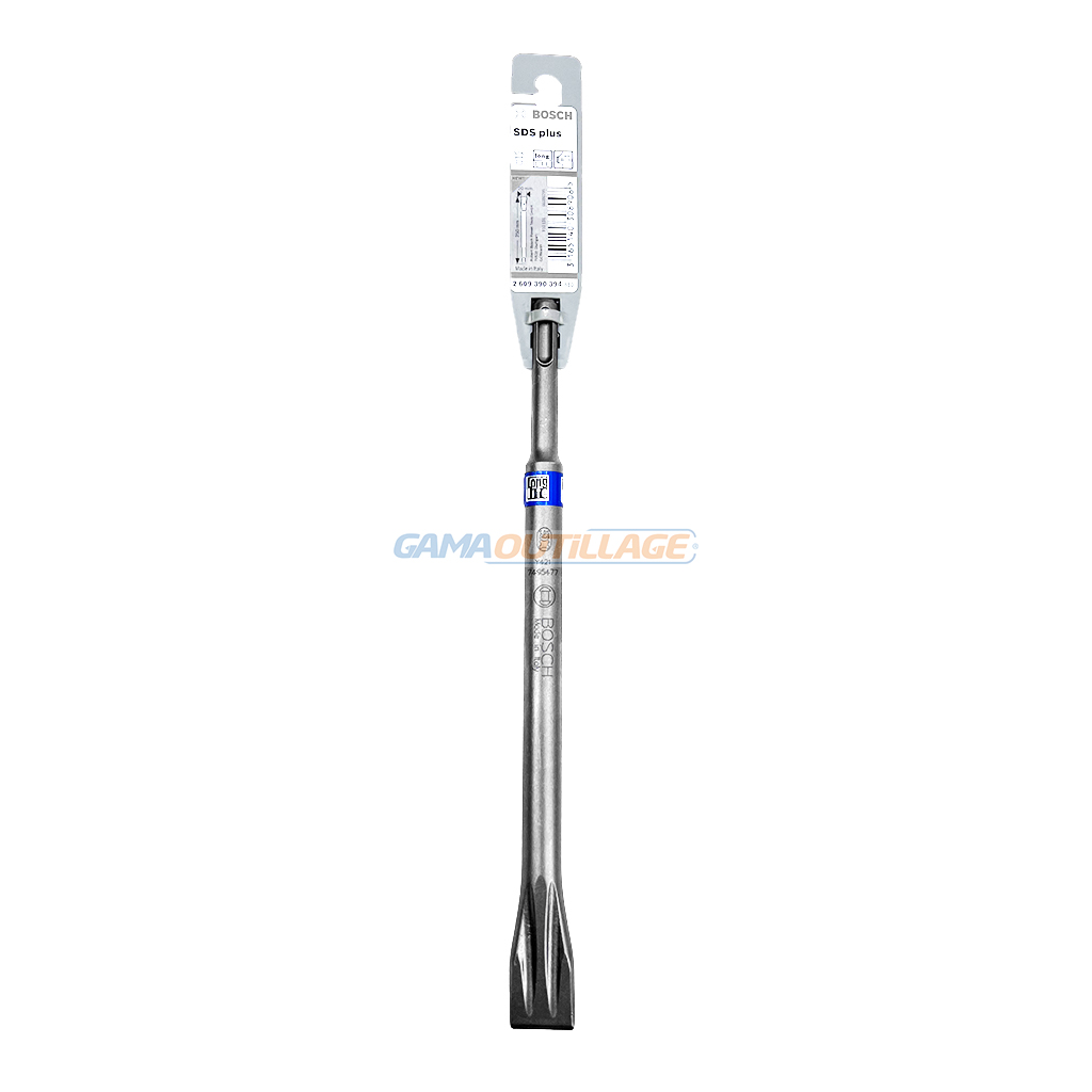 Burin plat SDS Plus Bosch Long Life 150mm. Haute résistance, pour béton, pierre et maçonnerie. Largeur 20mm, longueur totale 250mm.