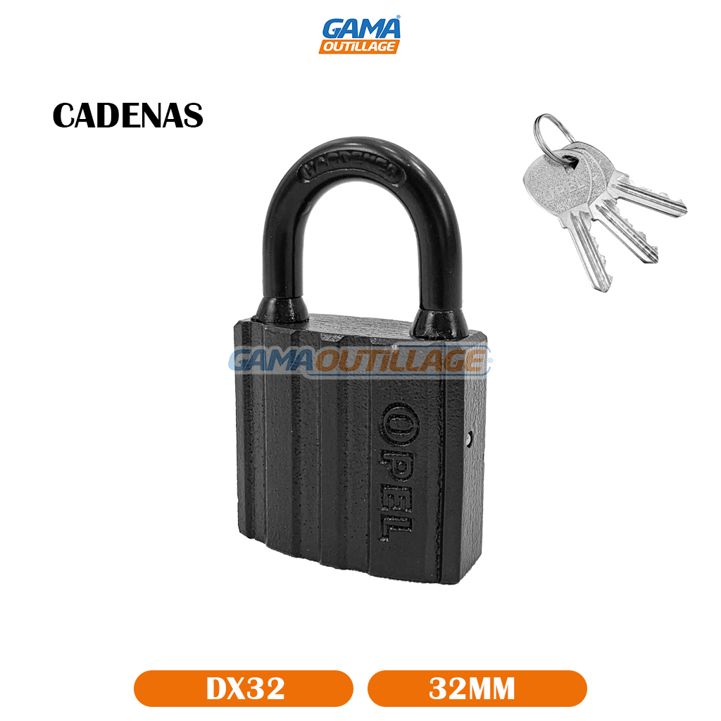 CADENAS 32MM OPEL, est un dispositif de sécurité utilisé pour verrouiller et protéger des biens, cette outil représentent une solution de sécurité simple, efficace et économique pour protéger vos biens.
