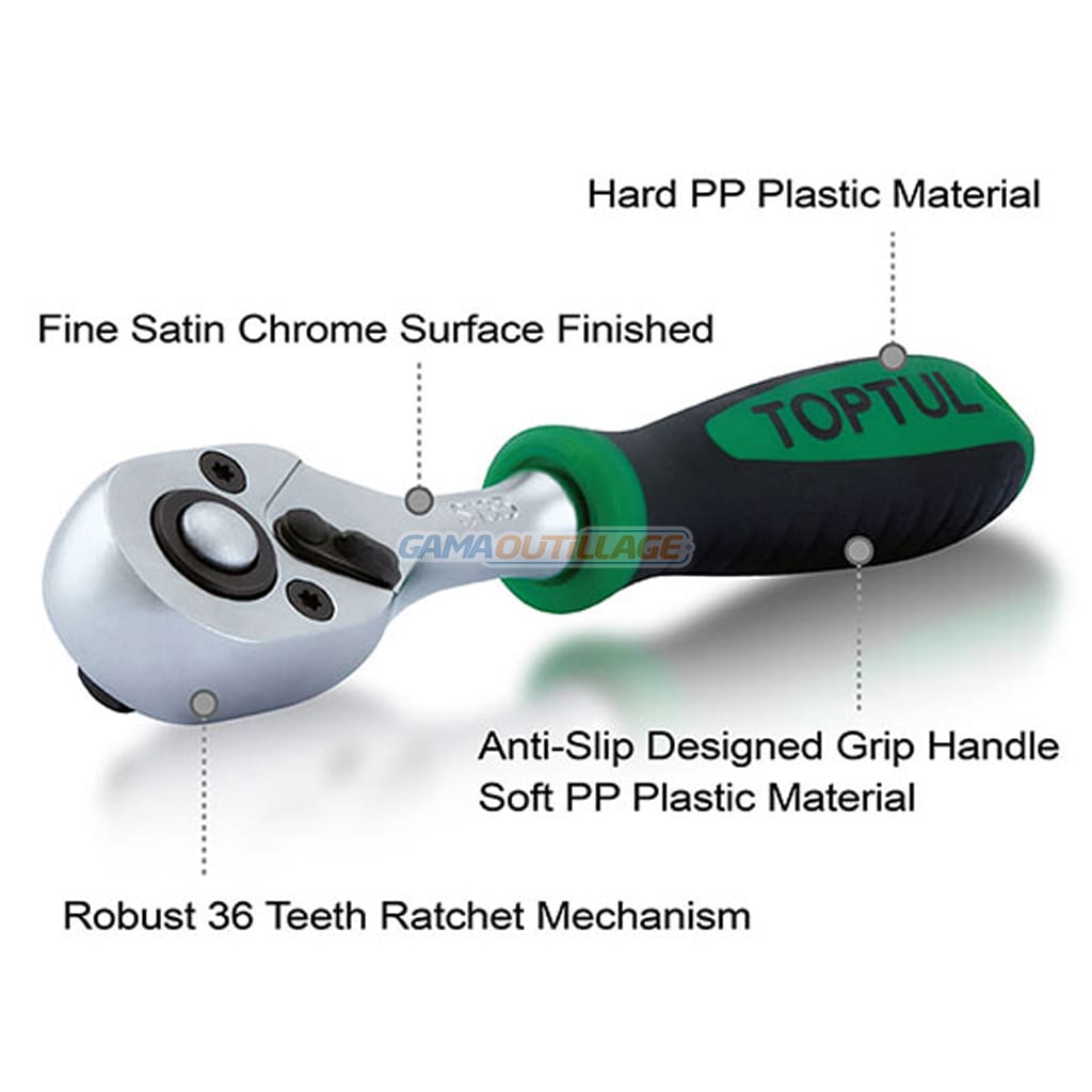 Chez Gama Outillage, nous savons que les professionnels et les passionnés de bricolage en Algérie recherchent des outils fiables et performants. C’est pourquoi nous proposons la gamme Toptul, reconnue pour sa robustesse et sa qualité. Que ce soit pour une poignée à cliquet réversible, un embout à changement rapide ou un tournevis antidérapant à fente, vous trouverez l'outil adapté à vos besoins.Poignées à Cliquet et Embouts Rapides : Gagnez en Efficacité
