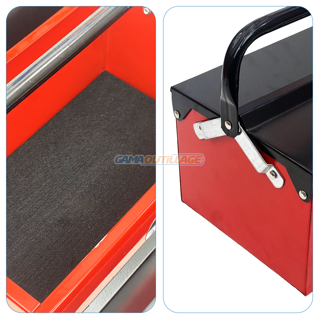 La caisse rigide GA675 est idéale pour transporter et ranger vos outils au quotidien. Elle se compose d’un compartiment unique, avec une construction en acier robuste et une finition bicolore rouge et noire. Compacte et pratique, elle convient aussi bien aux professionnels qu’aux particuliers.