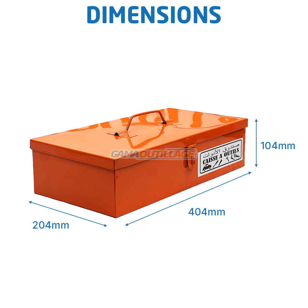 La caisse à outils métallique GA673 est conçue pour offrir une solution de rangement simple, fiable et durable. Fabriquée en métal localement, elle présente une construction résistante avec une finition orange vive facilitant son identification sur les chantiers. Sa capacité généreuse de 40 cm de long, 20 cm de large et 10 cm de haut permet d’accueillir vos outils manuels essentiels, qu’il s’agisse de clés, tournevis, douilles ou petits accessoires.