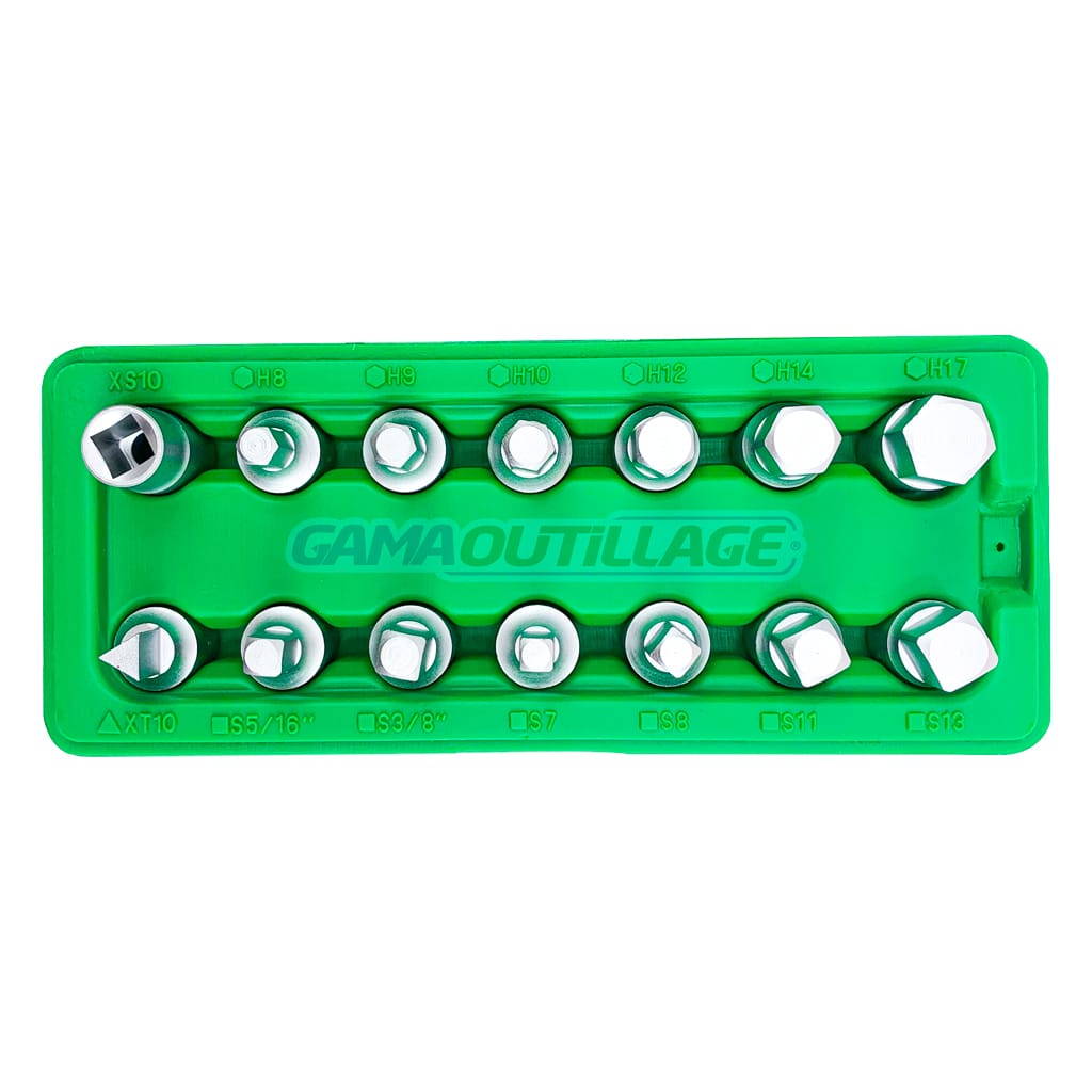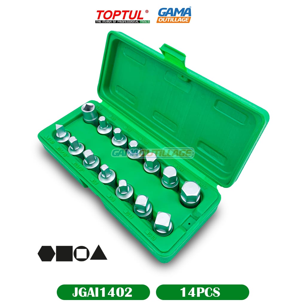 GAMAOUTILLAGE vous propose une CAISSE CLE VIDANGE 14PCS TOPTUL, Jeu de clés de bouchon de vidange d’huile principal de 14 pièces 3/8 “DR.