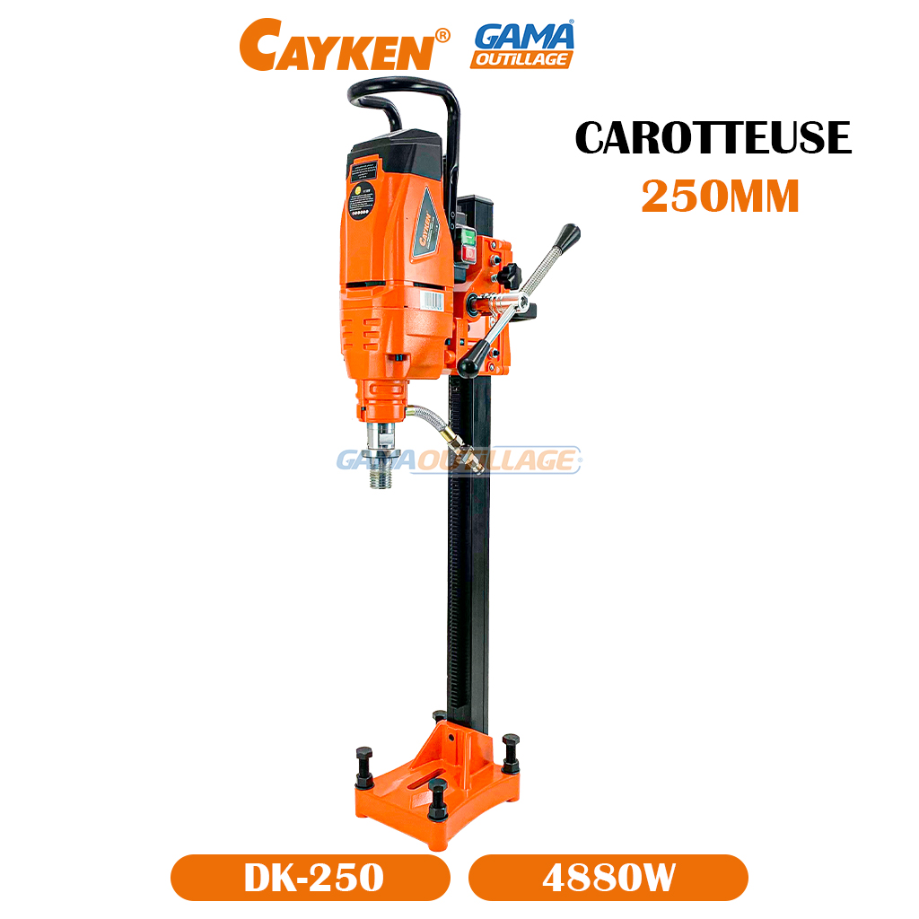 CAROTTEUSE 250MM 4880W CAYKEN, est un outil électrique professionnel utilisé pour réaliser des trous de grand diamètre dans différents matériaux, tels que le béton, la brique ou la pierre. Elle est équipée d’une couronne de forage, d’où son nom.