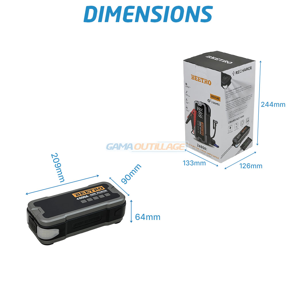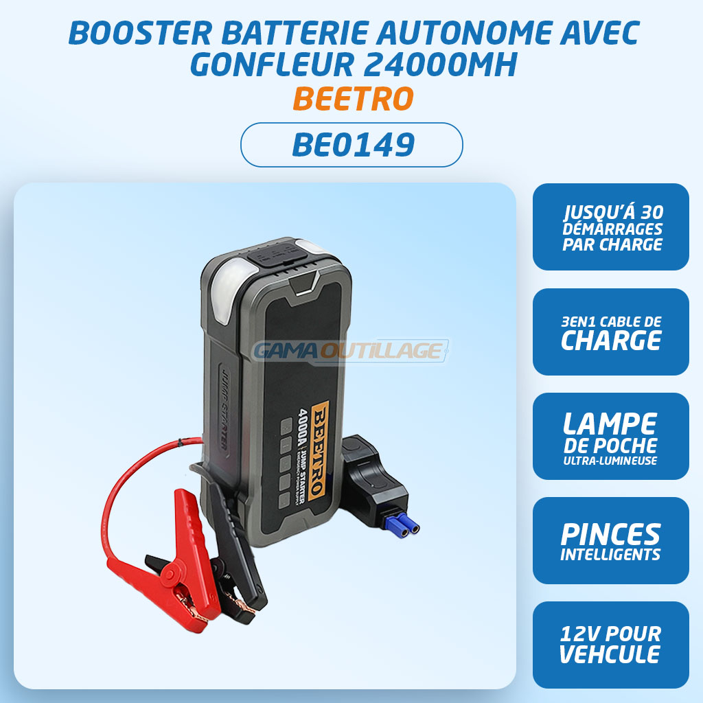Booster batterie autonome avec gonfleur BEETRO – 24000mAh / 4000A