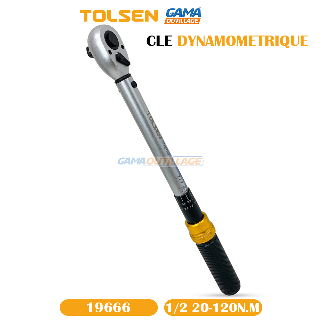 GAMAOUTILLAGE vous propose une CLE DYNAMOMETRIQUE 1/2 20-120N.M TOLSEN, est un outil essentiel pour tout bricoleur ou mécanicien qui a besoin de serrer ou de desserrer des boulons et des écrous avec précision. Elle est dotée d’une tête carrée de 1/2 pouce et d’une plage de couple de 20 à 120 newtons-mètres.