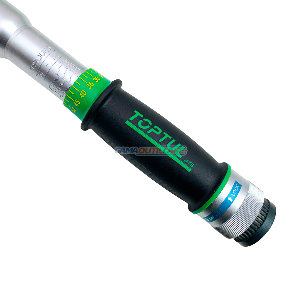 GAMAOUTILLAGE vous propose une CLE DYNAMOMETRIQUE 3/4 140-700 NM TOPTUL, Fonction unique de réglage de l’échelle par poussée pour verrouiller/tirer pour déverrouiller Conception, ergonomique, poignée antidérapante en matériau TPR