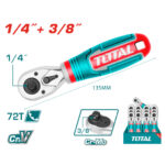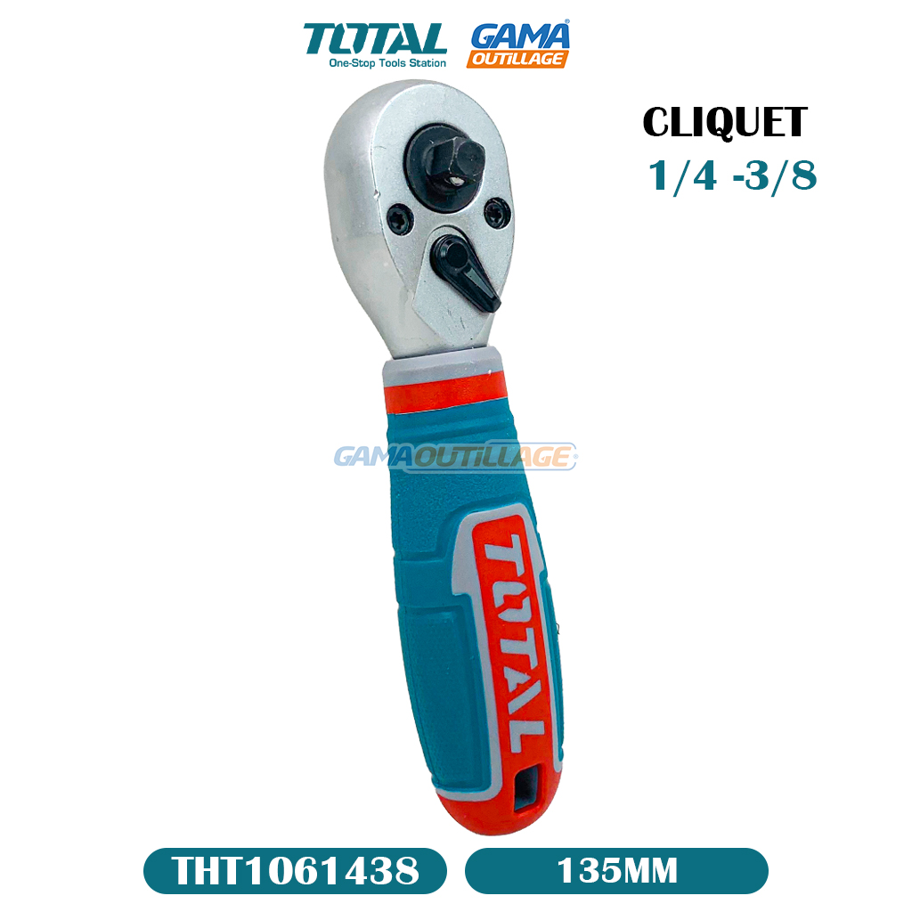 CLIQUET 1/4 -3/8 TOTAL, est un outil conçu pour serrer ou desserrer des boulons et des écrous dans des espaces restreints cette outil manuel à main utilisé pour serrer ou desserrer des vis et des écrous à tête hexagonale.