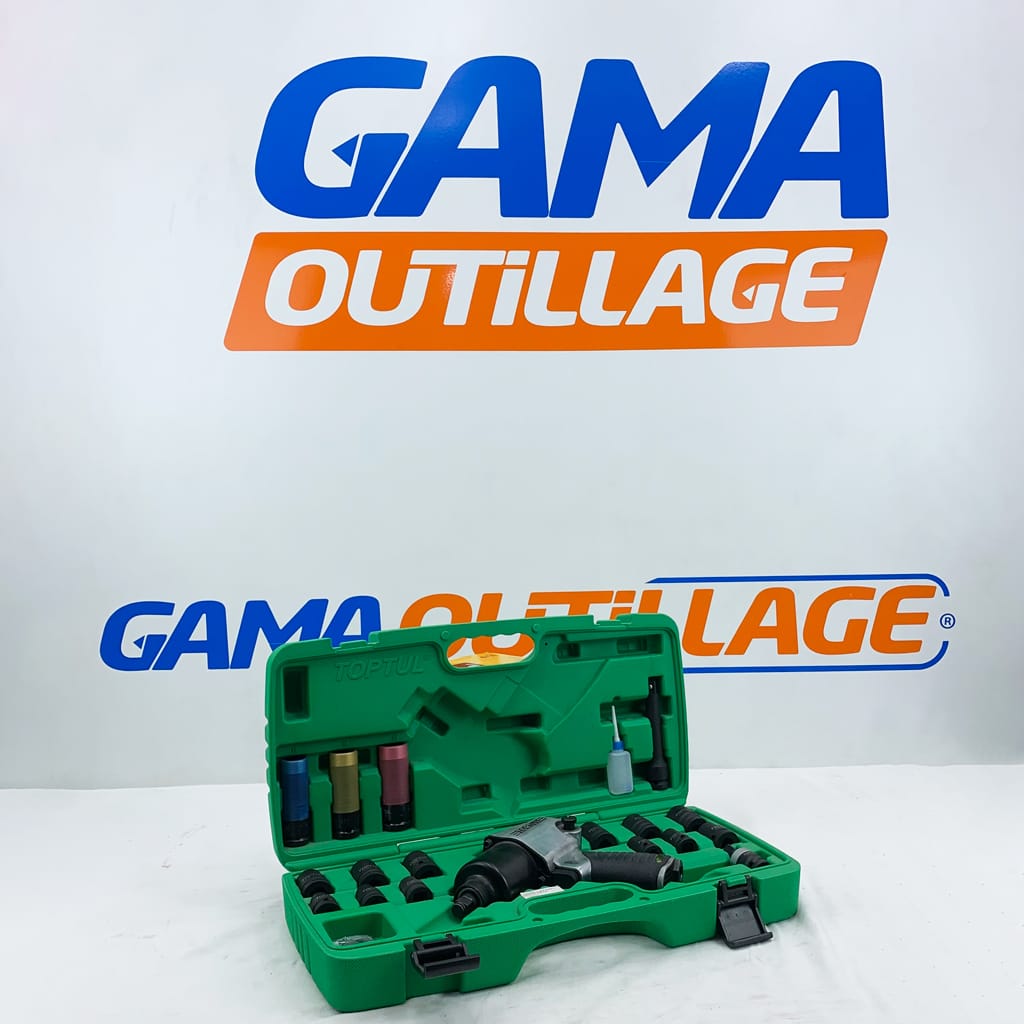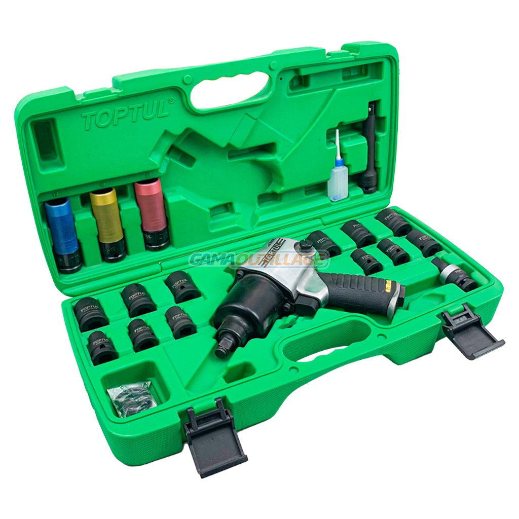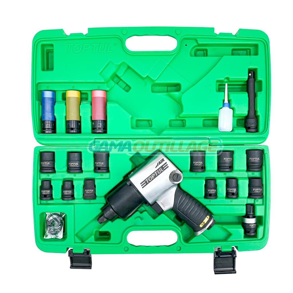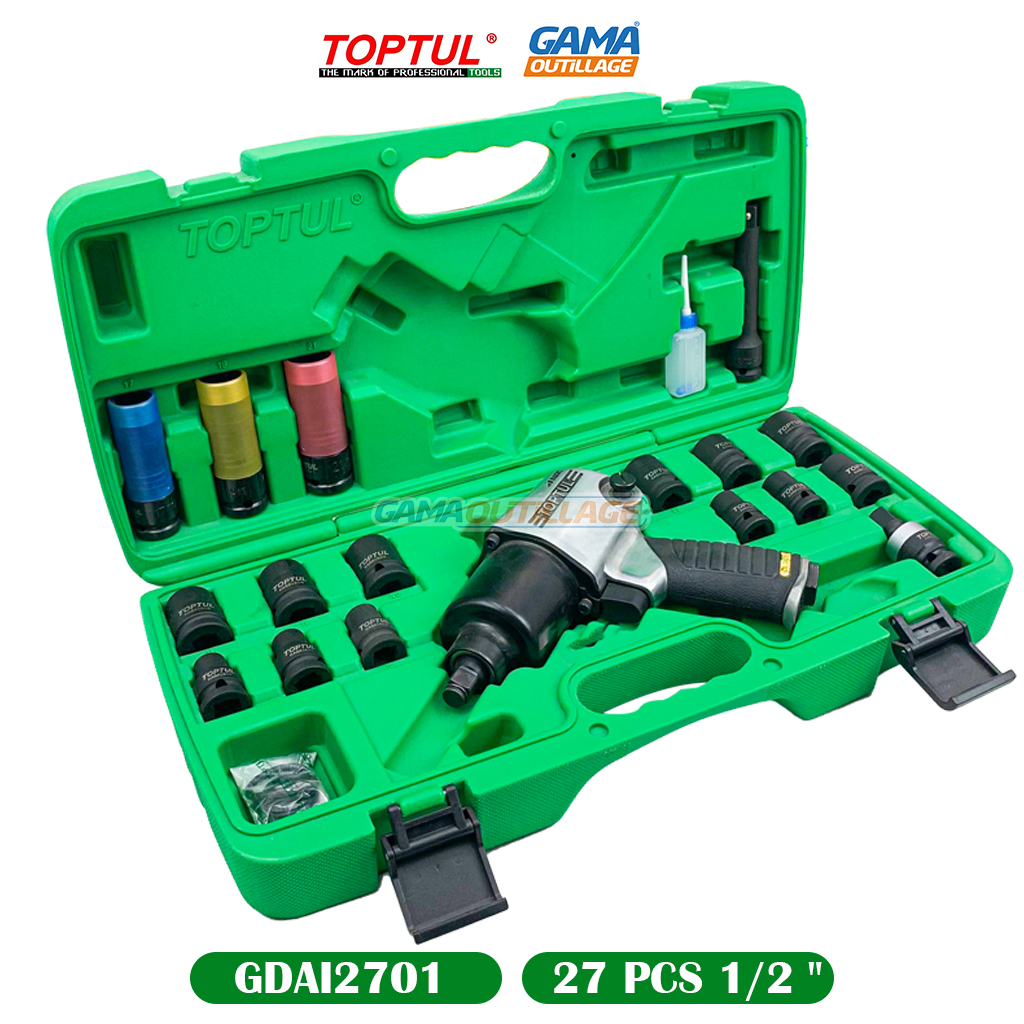 GAMAOUTILLAGE vous propose un COFFRET CLE A CHOC + DOUILLE TOPTUL, Jeu de clés à chocs pneumatiques (coupe max. 600 pi-lb) 27 pièces 1/2 “DR. Pour Les Professionnels Et Les Bricoleurs : Le meilleur rapport qualité-prix pour un outillage alliant qualité, robustesse, performance, technologie et confort