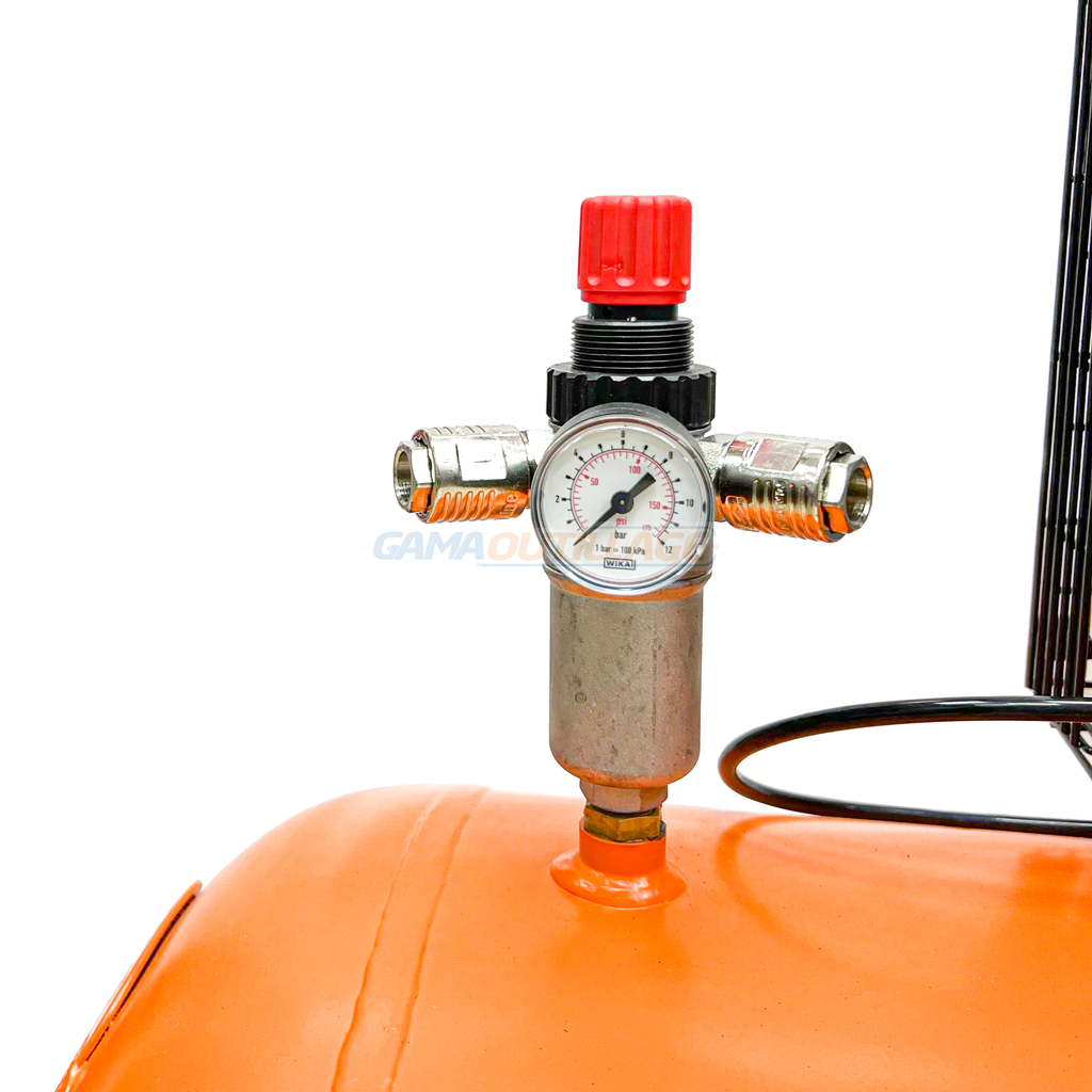 - Équipement double robinet rapide universel avec régulateur de pression. Manomètre à double lecture, une pour la pression dans le réservoir et une pour la pression de travail.