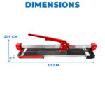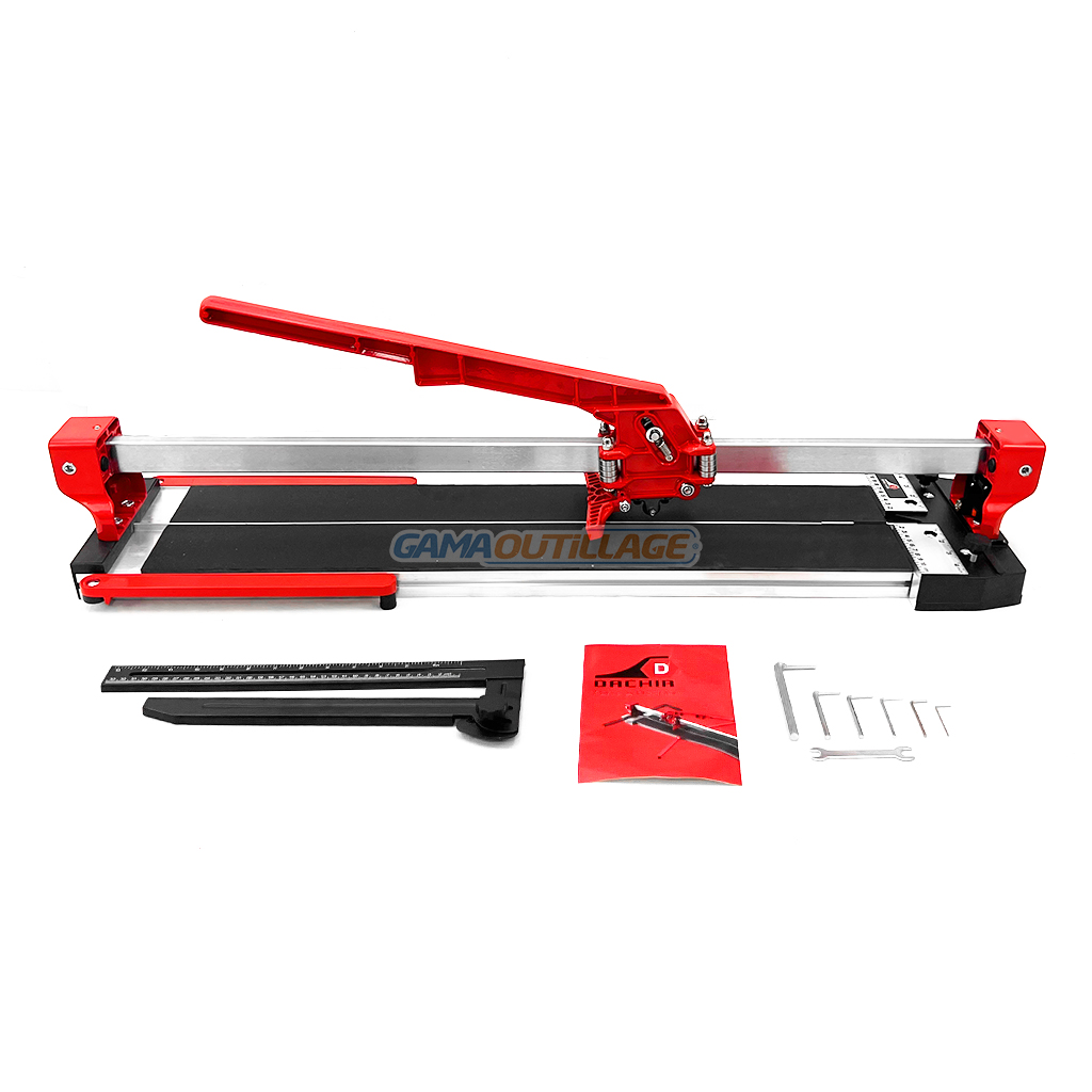 La coupeuse manuelle DACHIR E302-1200 est un outil professionnel conçu pour la découpe précise des carreaux. Idéale pour les carreaux de grande taille, elle permet de couper des matériaux d’une épaisseur de 7 à 16 mm et d’une longueur maximale de 1200 mm. Sa conception robuste assure une stabilité optimale pendant la coupe, et son système de guidage garantit des lignes droites et nettes. Le chariot de coupe glisse en douceur pour une incision efficace, et le levier permet de casser le carreau proprement après le traçage. Cet outil est un atout indispensable pour les carreleurs exigeants.