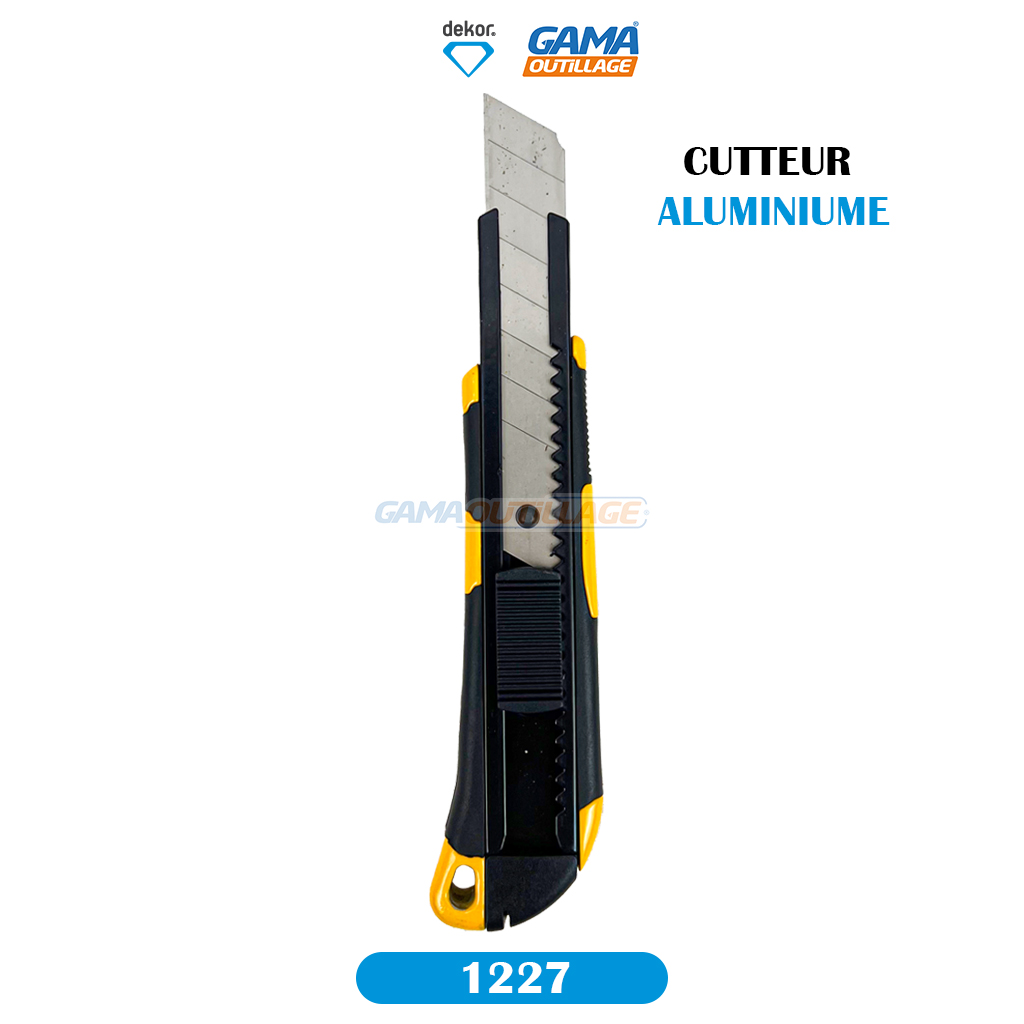GAMAOUTILLAGE vous propose une CUTTEUR ALUMINIUME 1227 DEKOR, est un cutter robuste et polyvalent, idéal pour une variété de tâches de coupe. Il est doté d’une lame en acier SK5 durable qui reste affûtée pendant longtemps, et d’un corps en aluminium robuste qui peut résister à une utilisation intensive.