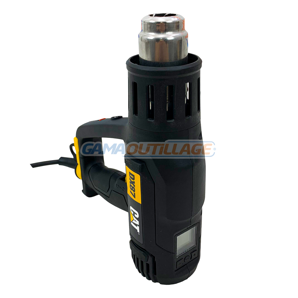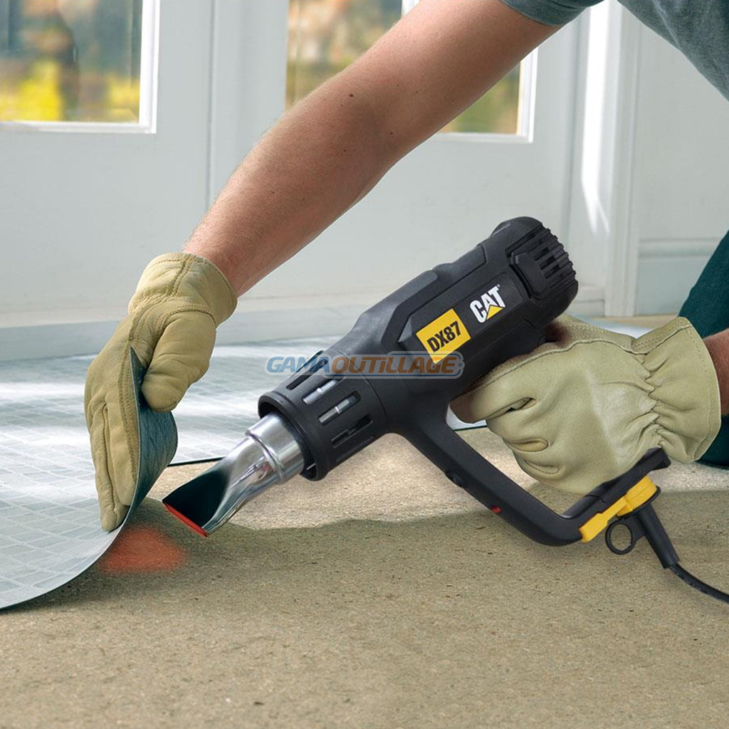 DECAPEUR THERMIQUE 2000W CATERPILLAR, est un pistolet thermique de 1800 watts avec 2 vitesses. Il est idéal pour une variété de tâches, notamment le décapage de la peinture, le soudage plastique, le séchage des surfaces et le dégel des tuyaux.