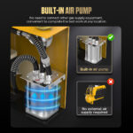 - Pompe à air intégrée : Pas besoin d’une alimentation en air séparée !